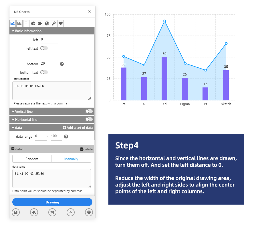 Combination of line chart and bar chart